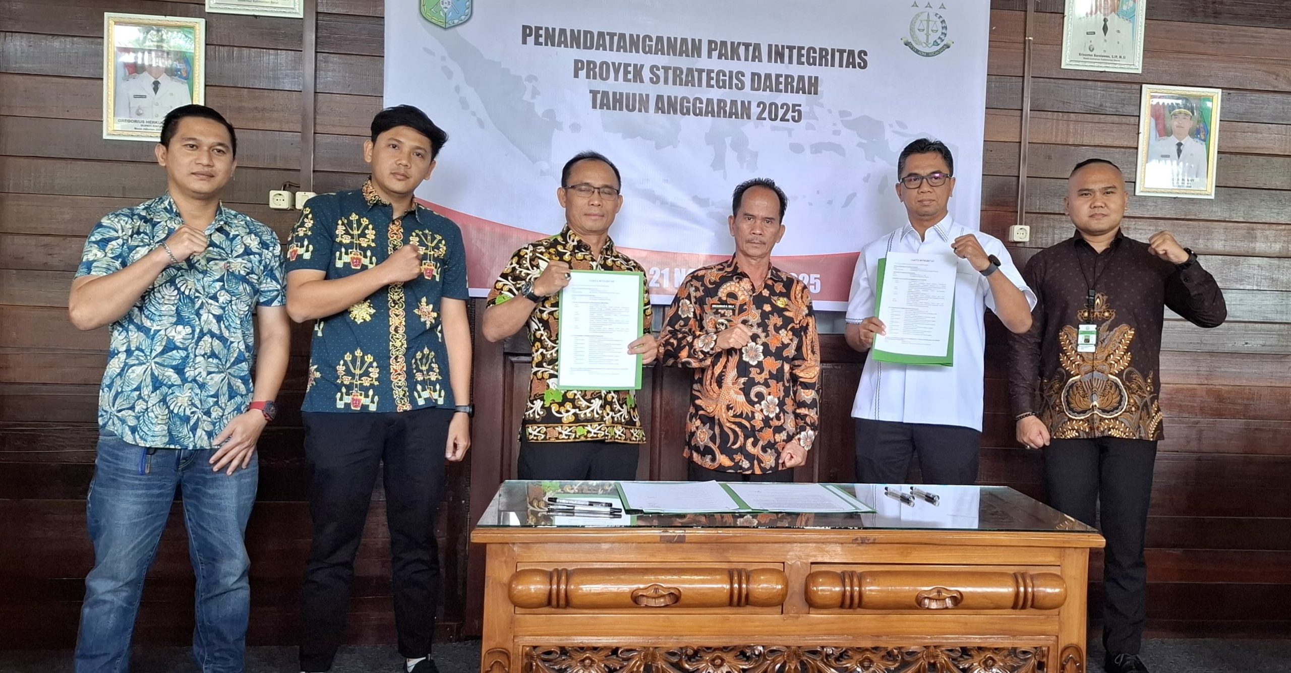 Pemerintah Kabupaten Sintang menggelar penandatanganan Pakta Integritas Proyek Strategis Daerah Tahun Anggaran 2025 di Pendopo Rumah Jabatan Bupati Sintang, Jumat (21/11/2025). Dalam kegiatan tersebut, sedikitnya 14 proyek strategis diteken bersama dengan pendampingan dari Kejaksaan Negeri Sintang.