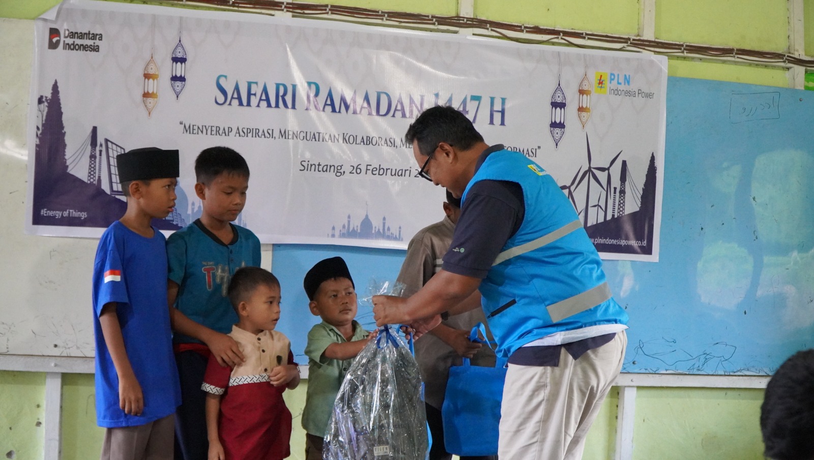PLN Indonesia Power Unit Bisnis Pembangkitan (UBP) Sintang menyalurkan bantuan sembako dan alat tulis kepada anak-anak di Panti Asuhan Jemelak, Kecamatan Kelam Permai, Kabupaten Sintang, dalam rangka kegiatan Safari Ramadan.