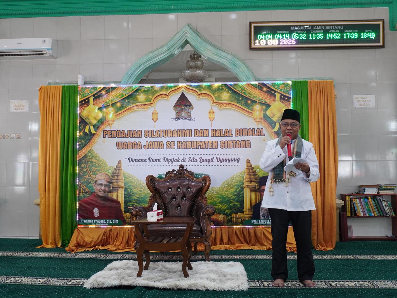 Pemerintah Kabupaten Sintang mengajak warga suku Jawa untuk terus berperan aktif dalam mendukung pembangunan daerah. Ajakan tersebut disampaikan Bupati Sintang yang diwakili Staf Ahli Bupati Bidang Perekonomian, Pembangunan, dan Keuangan, Helmi, saat menghadiri kegiatan Pengajian Silaturahmi dan Halal Bihalal Idul Fitri 1447 Hijriah warga Jawa se-Kabupaten Sintang.